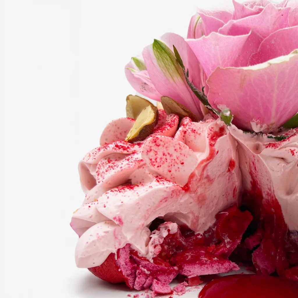 amourchocolatcompotéecouliscrèmedécor floraldessertframboisemeringuepatisseriepavlovapraline roseSaint-Valentin