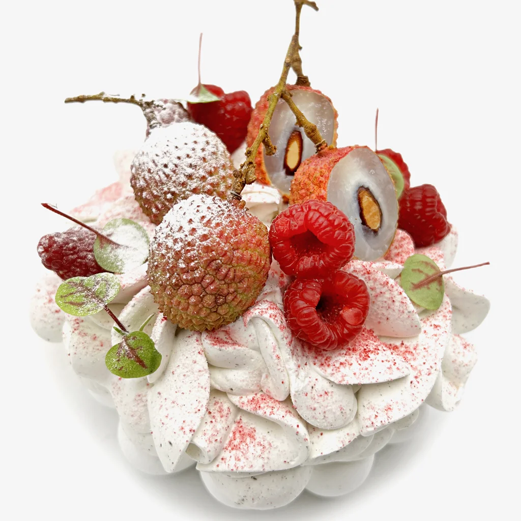 compotéecouliscrèmedessertframboiselitchimadagascarmeringuepatisseriepavlovavanille